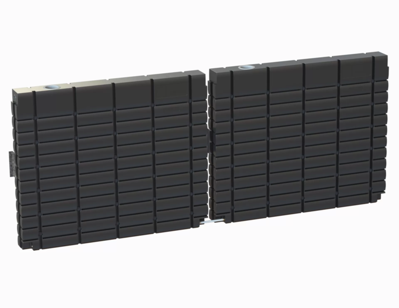 Een regenwaterschutting van goede kwaliteit. Stevig en ruimtebesparend doordat hij uit één module is opgebouwd.